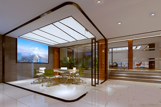 本次办公楼装修设计案例办公室装修设计是整个办公室装修工程中的灵魂,办公室装修更需要科学、人性化的设计,合理的显示空间布局,充分利用办公空间资源,解决客户的功能要求。在会议室在平面设计功能上,考虑了合理的行动路线,以便于人员的走动,办公家具的选择充分考虑了培训及会议的机动性,在色彩方面以白、黄、灰色几种色彩的组合,虚实相应,使整个空间显得简练而具有动感。