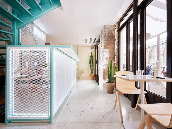 装修时间:2016.4.10-2016.5.10装修类型:餐饮店装修装修风格:现代装修面积:120㎡案例说明:根据餐厅的主人的要求,希望顾客可以边吃汉堡边享受到海滩的味道,于是我们看到了整个室内热情惬意的氛围,由于许多家具和构建均采用了金属材质,给人以清凉的夏日之感。一些就餐区相对独立,金属构件从地面通到天花板,仿佛沙滩上撑着的遮阳伞。墙壁时而裸露出破旧,时而装饰以抽象几何图案,对比于平衡被设计师信手拈来。其实整个空间主要色彩为青色与粉色,两色交替出现,即使卫生间的霓虹灯也按照此规则闪烁。到了晚上室内颜色慢慢溢出到街上,散发出诱人的魔力,在这样一个餐厅享受美食,感觉很特别。浏览次数: